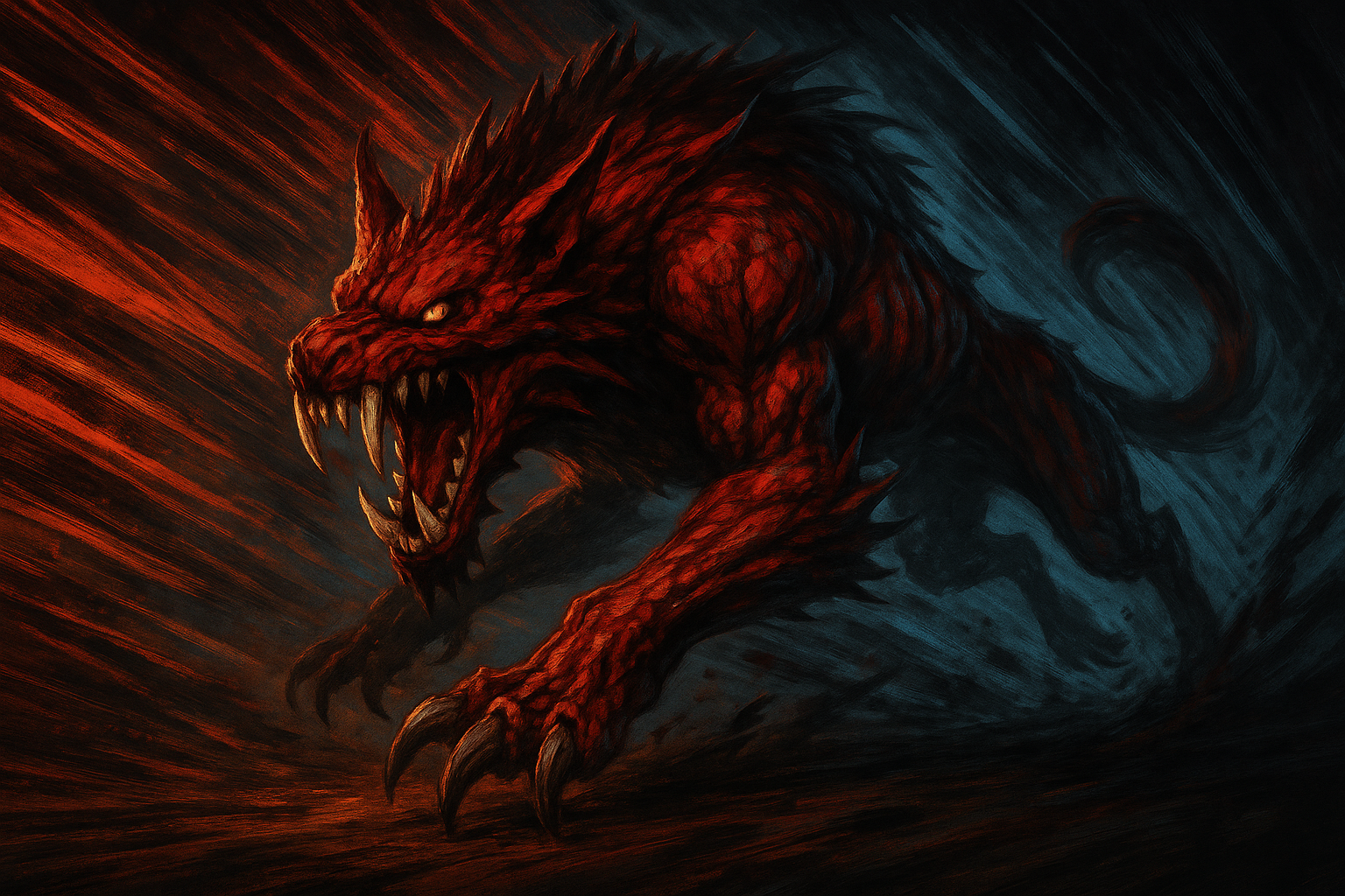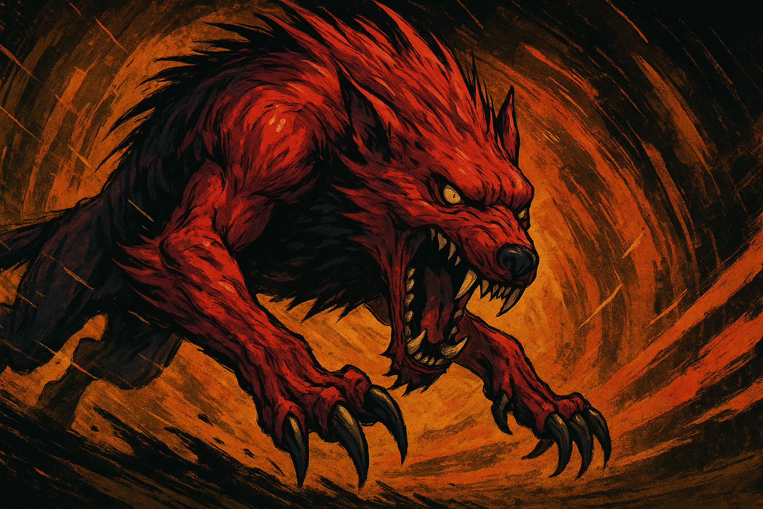 赤い残光が地を走り、次の瞬間には、牙が眼前に迫っている。