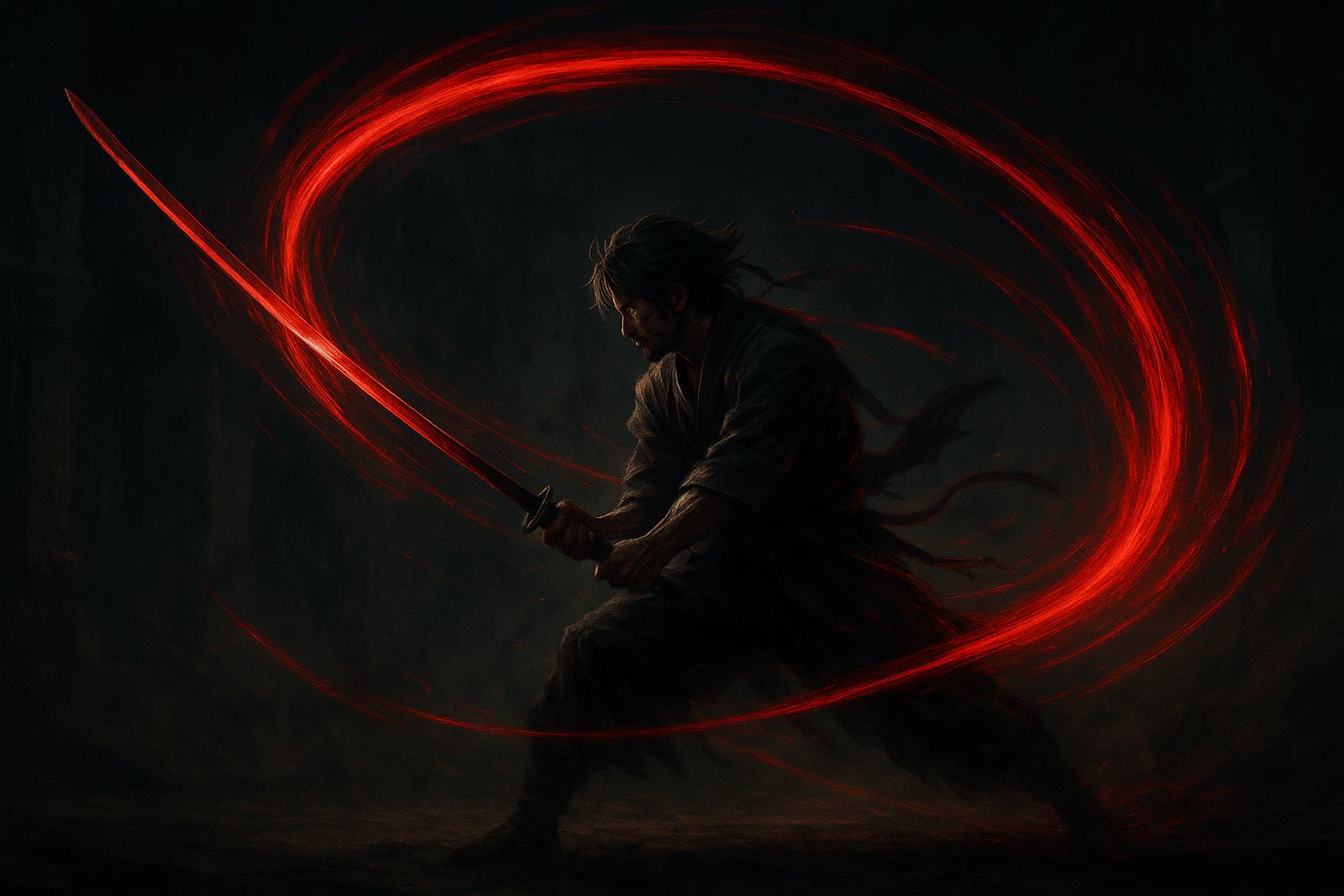 心臓の鼓動と刀身の重みがぴたりと重なり、世界は一つの線だけを見るために研ぎ澄まされる。